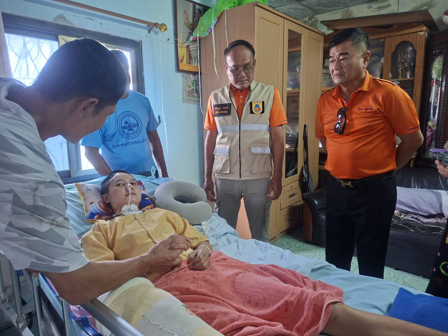 ลงพื้นที่ติดตามอาการพร้อมให้กำลังใจผู้ป่วยที่ประสบอุบัติเหตุ บริเวณบ้านแสงเจริญ หมู่ที่ 11 ตำบลช่องสามหมอ อำเภอแก้งคร้อ จังหวัดชัยภูมิ.
