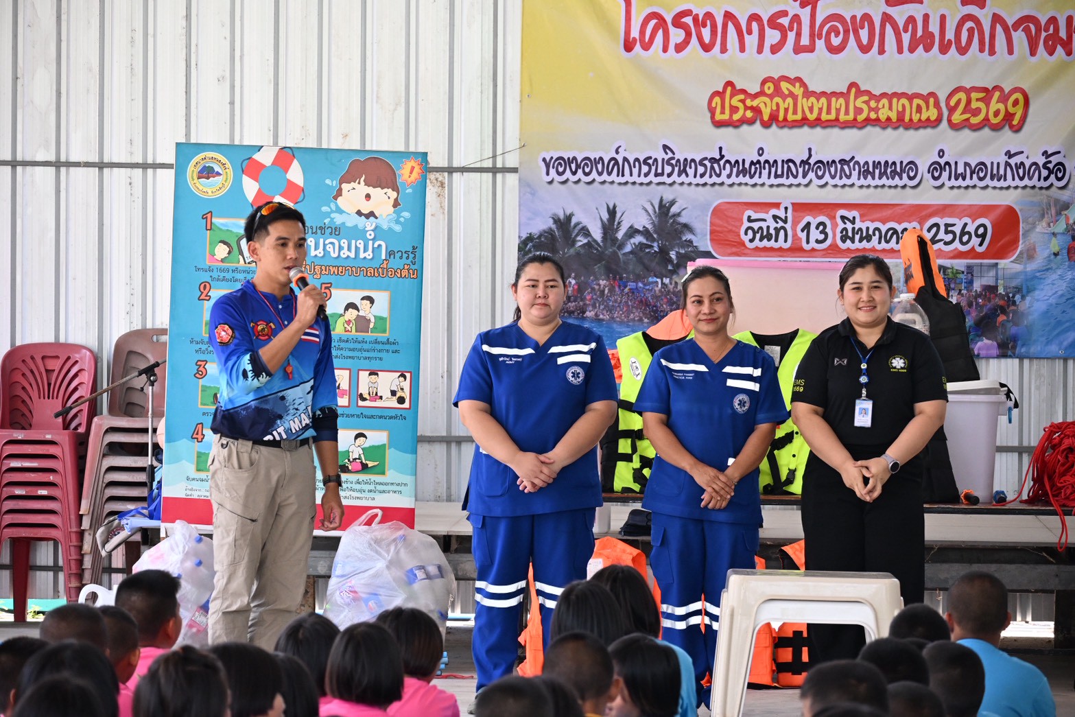วัน ศุกร์ ที่ 13 มีนาคม 2569 เวลา 09.00 น. นาย มนตรี ธนาปุณยสกุล นายกองค์การบริหารส่วนตำบลช่องสามหมอ พร้อมด้วยคณะผู้บริหาร เป็นประธานเปิดโครงการป้องกันเด็กจมน้ำ ประจำปี 2569 ณ สวนน้ำวิชิตชัยวอเตอร์ปา